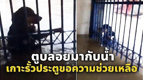 น่าสงสาร!! เจ้าตูบลอยมากับน้ำ เกาะประตูรั้วขอความช่วยเหลือ