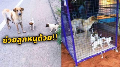 ช่วยลูกหนูด้วย!! แม่หมา ยืนขวางรถให้จอด เพื่อให้ลูกข้ามถนน พร้อมวิงวอนด้วยสายตา ช่วยพวกเราด้วย