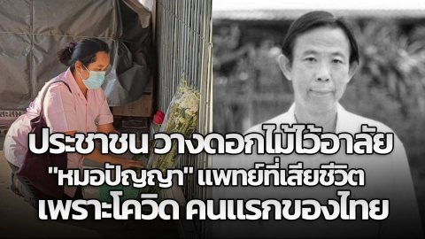 ประชาชน วางดอกไม้ไว้อาลัย "หมอปัญญา" แพทย์ที่เสียชีวิตเพราะโควิด คนแรกของไทย
