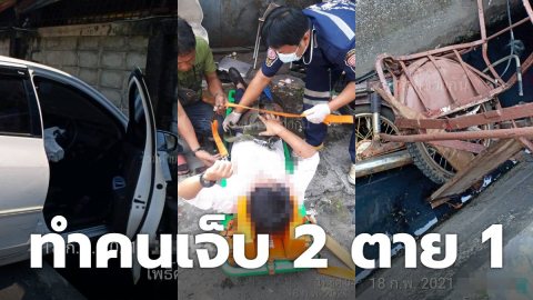 เก๋งหลับใน ชนร้านค้าและรถจอดข้างทาง ทำคนเจ็บ 2 ตาย 1