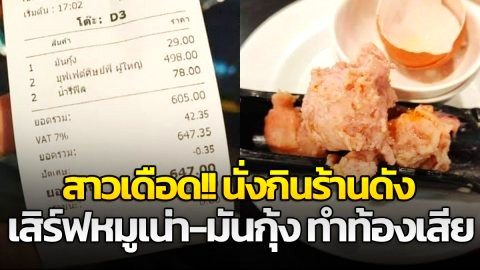 สาวเดือด!! นั่งกินร้านดัง เสิร์ฟหมูเน่า-มันกุ้ง ล่าสุดท้องเสีย