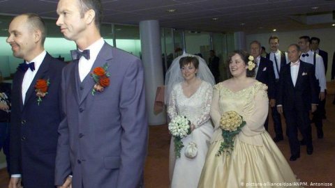 บรรยากาศสุดชื่นมื่น “วิวาห์หวาน” หญิงรักหญิงจูงมือแต่งงาน สินสอด 7 หลัก