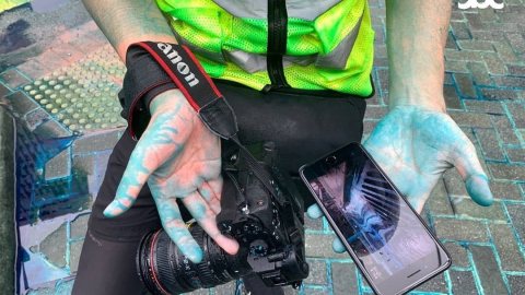 เป็นครั้งแรกที่ตร. ฮ่องกง ฉีดน้ำผสมสีลบไม่ออกใส่ผู้ชุมนุม เพื่อจำแนกแยกตัว