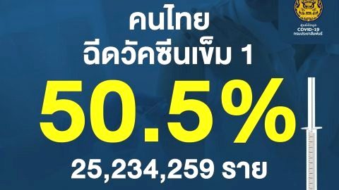 สธ.เผยข้อมูล ยอดคนไทยฉีดวัคซีนเข็ม 1 สูงถึง 50.5 %