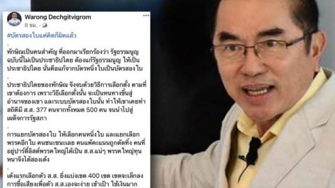หมอวรงค์ ชี้ บัตรเลือกตั้ง 2 ใบ จะเปิดโอกาสให้ทักษิณ กลับไทยได้