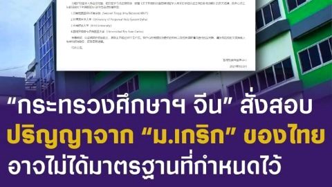 ศธ.จีน สั่งสอบ ปริญญาจาก ม.ชื่อดังในไทย อาจไม่ได้มาตรฐานตามที่กำหนดไว้