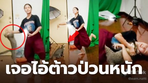 สาวเรียนออนไลน์ เจอไอ้ต้าวป่วนหนัก ทำให้ไม่สามารถรำไทยหน้ากล้องได้