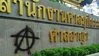 พบมือดีพ่นสัญลักษณ์เชิงต่อต้านอำนาจรัฐ ป้ายศาลอาญารัชดา