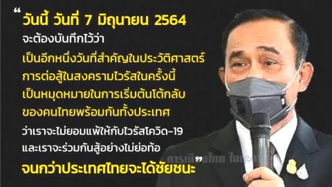 'ประยุทธ์' ลั่น 7 มิ.ย. 2564 ประวัติศาสตร์จะบันทึกไว้ ไทยเริ่มโต้กลับ สงครามไวรัสโควิด