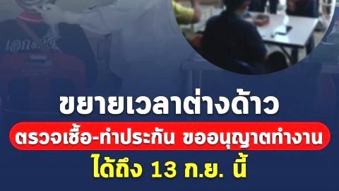 รัฐบาล เห็นชอบขยายเวลาแรงงานต่างด้าว 3 สัญชาติ ตรวจเชื้อโควิด-19 ทำประกันสุขภาพและขออนุญาตทำงาน ให้เสร็จภายใน 13 ก.ย.64