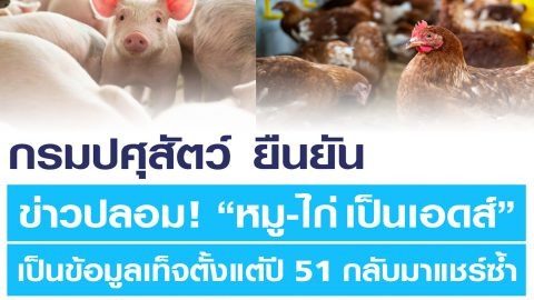 กรมปศุสัตว์ ยืนยัน ข่าวปลอม! "หมู-ไก่ เป็นเอดส์" ข้อมูลเท็จตั้งแต่ปี 51 กลับมาแชร์ซ้ำ