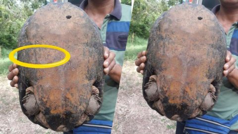 จ้องดีๆ หนุ่มพบเต่ายักย์ คล้ายเต่าโบราณ จับหงายท้องเจอเลขชัดมาก