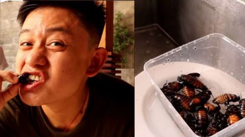 อ๊วกพุ่ง!! หนุ่มโชว์กินแมลงสาบ บอกรสชาติอร่อยเหมือนกุ้งที่ทอด แต่แอบคลื่นไส้หลังกิน