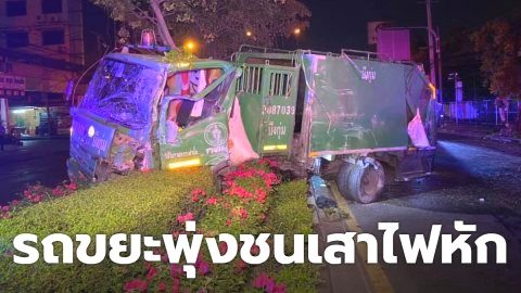 รถขยะพุ่งชนเสาไฟหัก ปีนเกาะกลางถนน เผยโดนแท็กซี่ตัดหน้ากะทันหัน