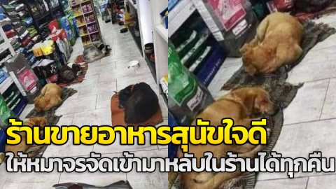 ร้านขายอาหารสุนัขใจดี อนุญาตให้หมาเข้าอาศัยหลับนอนในร้านได้ทุกคืน