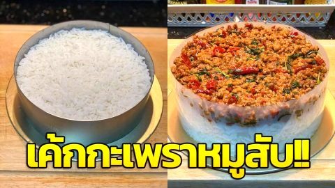 เค้กกะเพราหมูสับ!! ถ้า topping ไข่ดาวสักหน่อย ฟินจุกจุกแน่นอน!!