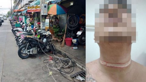 ประเทศเรามี!! หนุ่มขับเรือโอดขับจยย.เจอสายสื่อสารเกี่ยวคอหวิดขๅด เตือนหน่วยงานเห็นรีบแก้ไขกันประชาชนรับอันตราย