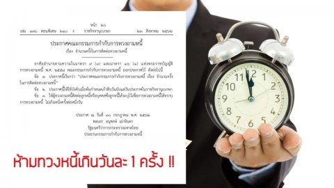 เจ้าหนี้รับทราบ!! ราชกิจจาฯ ประกาศห้าม “ทวงหนี้” เกิน 1 ครั้งต่อวัน บังคับใช้ 21 พ.ย.62