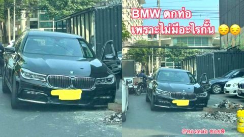 ทองหล่อเละเทะ! เปิดฝาท่อทิ้งไว้ ไร้ที่กั้น BMW ซวยล้อลงเต็มๆ