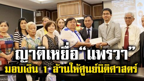 ญาติเหยื่อ “แพรวา” มอบเงิน 1 ล้านบาท ให้ศูนย์นิติศาสตร์ หวังเป็นทุนช่วยเหลือ ประชาชนต่อไป