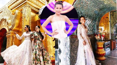ชุดอลังการมาก!! ”กาละแมร์ พัชรศรี” ใส่ทำบุญ ที่ประเทศพม่า
