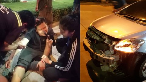 อาไท กลมกิ๊ก ระทึก ขี่จยย.กลับจากโรงยิม เจอเก๋งยูเทิร์นชนเต็มๆ