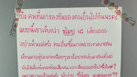 อึ้งหนัก!! สาวที่แอบขโมยของกินในตู้เย็นหอรวม เขียนข้อความขอโทษ หลังโดนขู่เปิดกล้องวงจรปิด