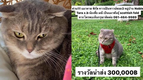 เจอแล้ว "น้องมณี" แมวหายจากบ้านย่านทาวน์อินทาวน์ ยังไม่ชัวร์ใครได้ 3 แสน