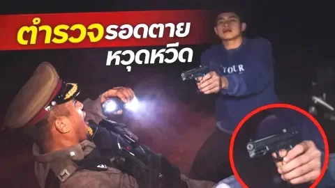 เผยคลิปตำรวจรอดตายหวุดหวิดหลังจากขอตรวจรถจักยานยนต์ต้องสงสัยโดนชักปืนยิงไหวตัวทัน
