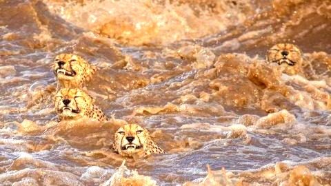 เปิดภาพนาที เสือชีตาห์ 5 ตัว รวบรวมความกล้าข้ามแม่น้ำที่เต็มไปด้วยศัตรูตัวฉกาจ