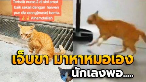 ไวรัล! แมวส้มแสนรู้ เจ็บขา-เดินกะเผลกไป รพ. เอง พร้อมออกมากับผ้าพันแผล