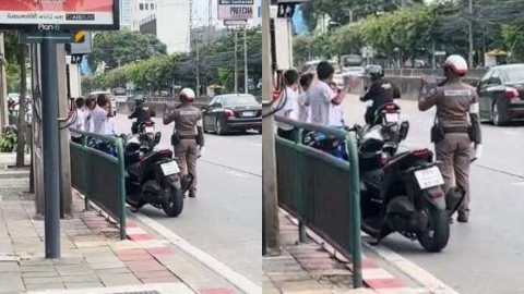 ปรับแบบใหม่แบบสับ! ชาวเน็ตชื่นชม "คุณตำรวจน่ารัก" ให้นักเรียนกระโดดตบแทนการปรับจราจร