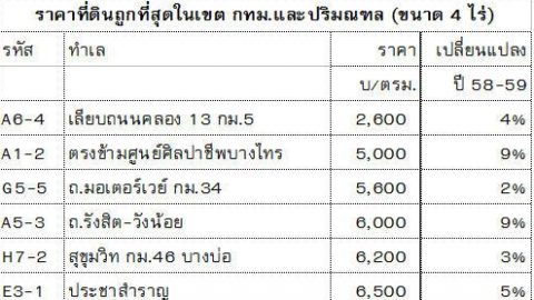 ที่ดินตรงไหนราคาถูกที่สุดในเขต กทม.และปริมณฑล
