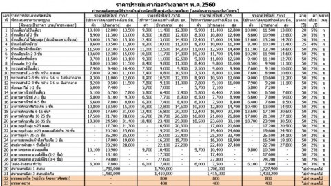 ราคาประเมินค่าก่อสร้างอาคาร พ.ศ. 2560 (มีนาคม 2560)