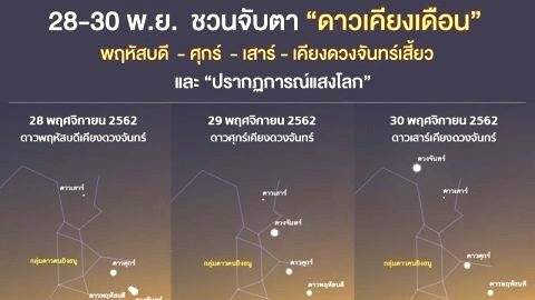 คืนนี้อย่าพลาด ปรากฏการณ์"ดาวเคียงเดือน"เเสงโลกเห็นได้ด้วยตาเปล่าทุกพื้นที่ทั่วประเทศ