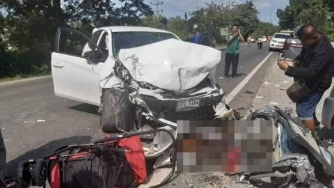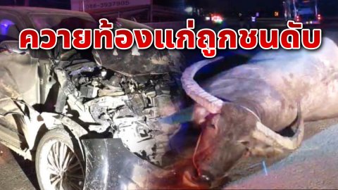 สุดสลด ควายท้องแก่ หลุดออกจากคอกวิ่งข้ามถนนด้วยความเร็ว โดนรถชนเสียชีวิต