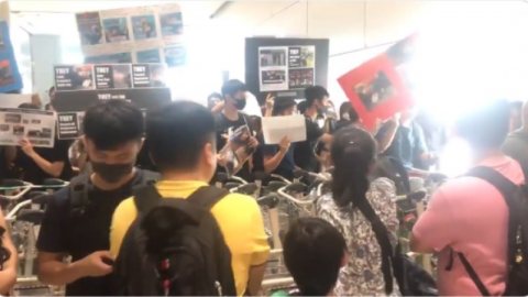วินาที หญิงไทยสุดทน จูงมือลูกชายบุกเข้าไปด่าม็อบฮ่องกง โมโหโดนยกเลิกเที่ยวบินลูกกลัวอยากกลับบ้าน