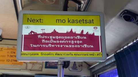 แชร์สนั่น!! ชาวเน็ตเจอป้ายบนรถเมล์ สะกดภาษา ไทย-อังกฤษเป็น แบบคาราโอเกะ แปลกดี ชาวต่างชาติคงจะ งง