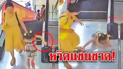 แม่ช็อก!!เด็กหญิง 5 ขวบหวิดแขนขๅด จับราวบันไดเลื่อน “แน่นเกิน” ถูกดูดติดแหงก