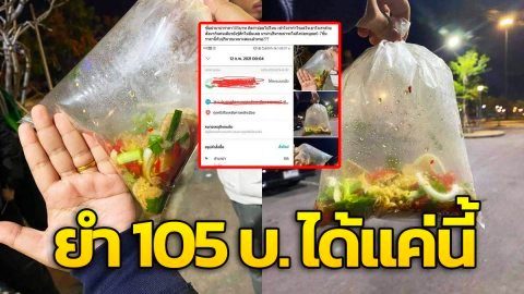 หนุ่มลมแทบจับ!! ซื้อยำมาม่า ราคา 105 บาท ได้ปริมาณเท่าแมวดม