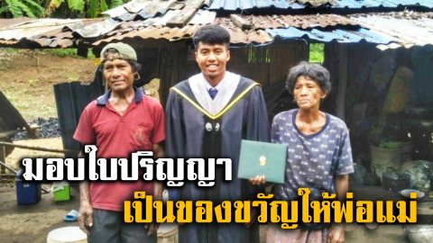 หนุ่มสุดเจ๋ง มอบใบปริญญา เป็นของขวัญให้พ่อแม่ เตรียมบวชทดแทนคุณ