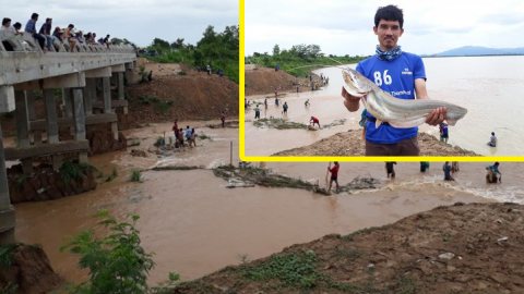 ชาวสุโขทัยแห่จับปลาแม่น้ำยม ขายหารายได้หลังเจอภัยแล้ง