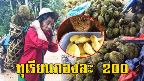 อดสงสารไม่ได้ กะเหรี่ยงแบกทุเรียนข้ามเขาจากฝั่งพม่า ผ่านเส้นทางแสนลำบาก ขายเพียงกองละ 200 บาทเท่านั้น
