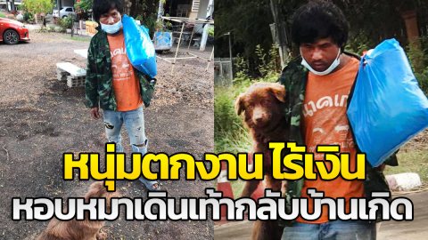 หนุ่มตกงาน ไร้เงิน หอบหมาเดินเท้ากลับบ้านเกิด สุดซึ้ง "ไม่อยากทิ้งกัน"