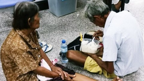 ชาวเน็ตแชร์!! สองผู้เฒ่ามาหาหมอ ระหว่างรอกินข้าวเปล่าที่ห่อมาจากบ้านโดยไม่มีกับข้าว
