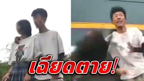 อุทาหรณ์!! คู่รักหนุ่มสาว โพสท่าแชะถ่ายภาพริมรางรถไฟ โดนรถไฟพุ่งเบียดกระเด็น เฉียดตาย