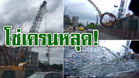 ชีวิตเสี่ยงๆของคนไทย หนุ่มขับรถอยู่ดีๆ โซ่รถเครนขาด เหวี่ยงฟาดกระจกหน้าแตกยับ