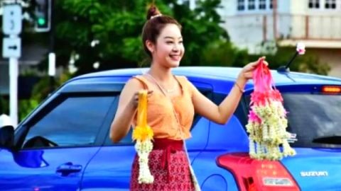 สาวสวยลาออกจากงาน มาหาแรงบันดาลใจ ร้อยพวงมาลัยขาย แยกไฟแดง