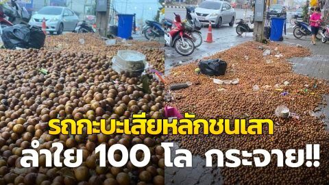 รถกะบะเสียหลักชนเสา ลำใย 100 โล กระจาย!!