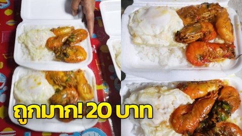 ลูกค้าตะลึง!! กุ้งแม่น้ำผัดพริกแกงราดข้าว-ไข่ดาว ราคาแค่ 20 บาท ถูกจนใจหาย